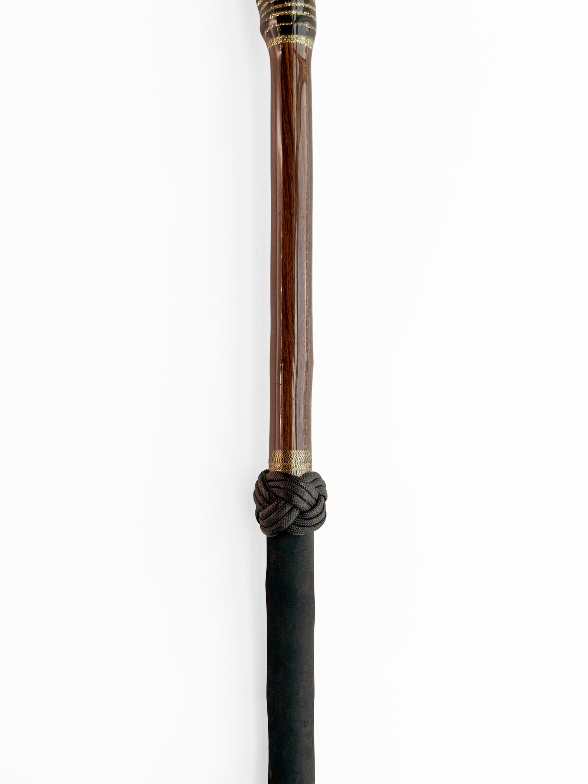 The Dahunter fishing rod features a striking black and gold bamboo design, measuring 5 feet for versatile use. Equipped with a 2.5-inch hook and paracord black and gold bindings, it blends durability with style. The rubber grip handle ensures comfortable hold during long fishing sessions, while the rubber butt end adds extra stability. Ideal for anglers seeking both performance and aesthetic appeal in one rod, the Dahunter delivers reliable control and a confident casting experience.