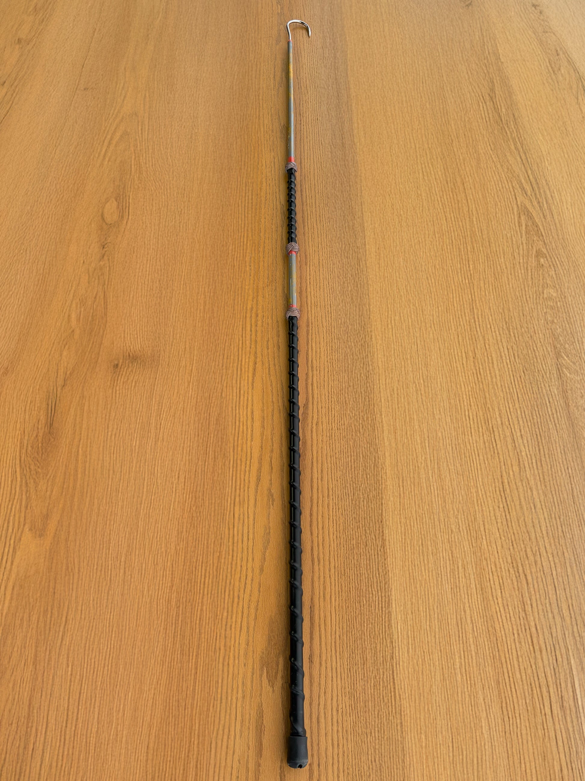 Dahunter Carbon Fiber Gaff with Spiral Black Grip and Red Bindings, 4Ft Shaft and 2-Inch Tiller Hook