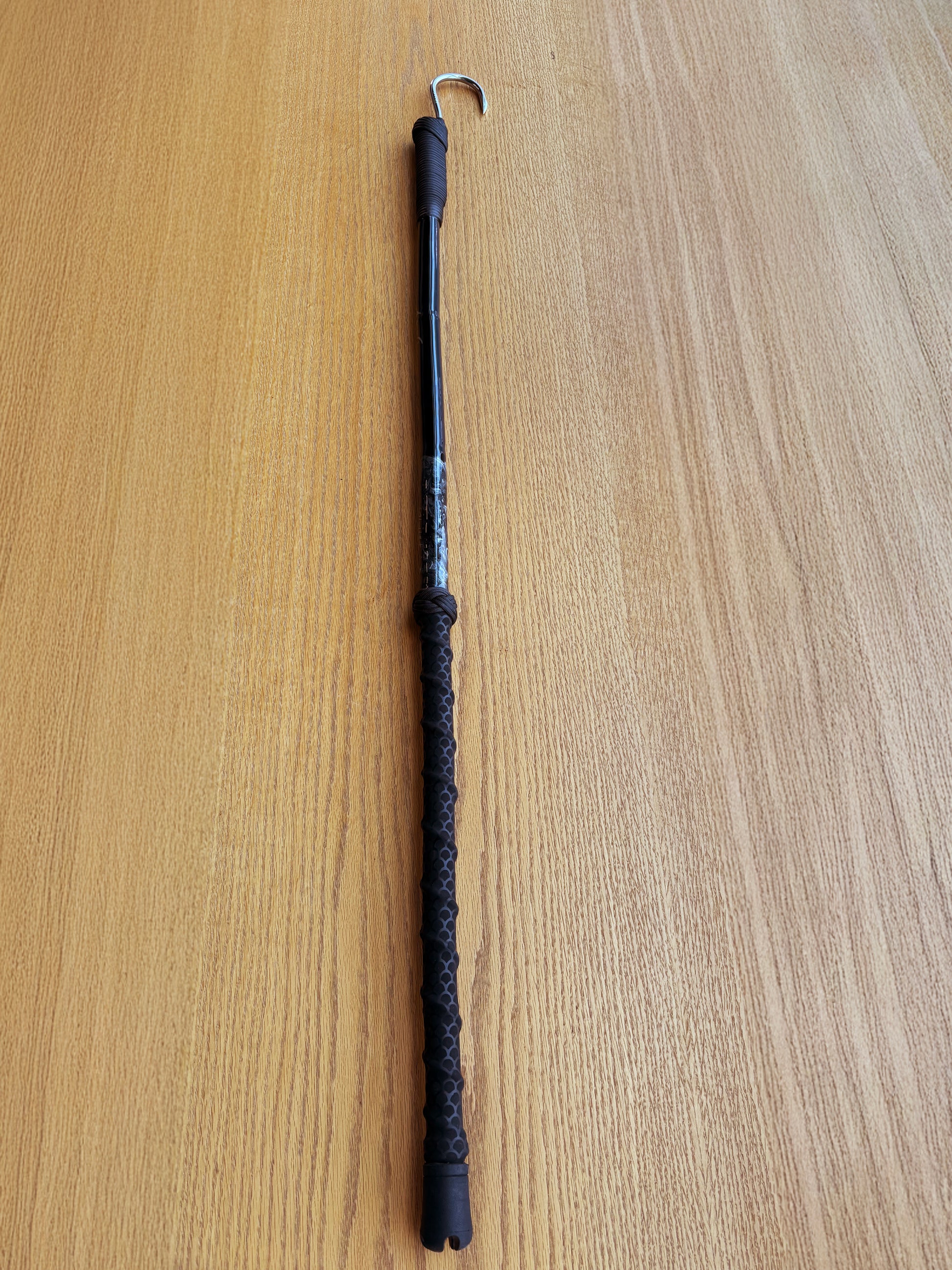 The Dahunter Gaffs Black Father 4 Feet combines durability and precision for your fishing needs. Its sturdy bamboo body is wrapped in tough black paracord wire bindings, providing strength and style. The 2-inch Tiller hook ensures a secure hold on your catch, while the fish scale pattern rubber grip and rubber butt offer comfortable, non-slip handling. Reliable and well-crafted, this gaff is designed to enhance your fishing performance every time.